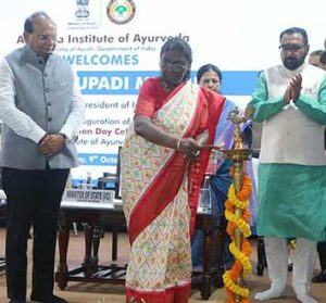 The President of India, Smt. Droupadi Murmu graced 8th Foundation Day celebration of All India Institute of Ayurveda (AIIA) under the Ministry of Ayush in New Delhi today and also took a visit to the AIIA campus. The event was graced by Shri Vinay Kumar Saxena, Hon’ble Lieutenant Governor of Delhi; Shri Prataprao Jadhav, Union Minister of State (Independent Charge), Ayush; Secretary Ayush Vaidya Rajesh Kotecha; AIIA Director Prof.(Dr) Tanuja Nesari; senior officials of Ayush Ministry and other senior faculty members of AIIA.